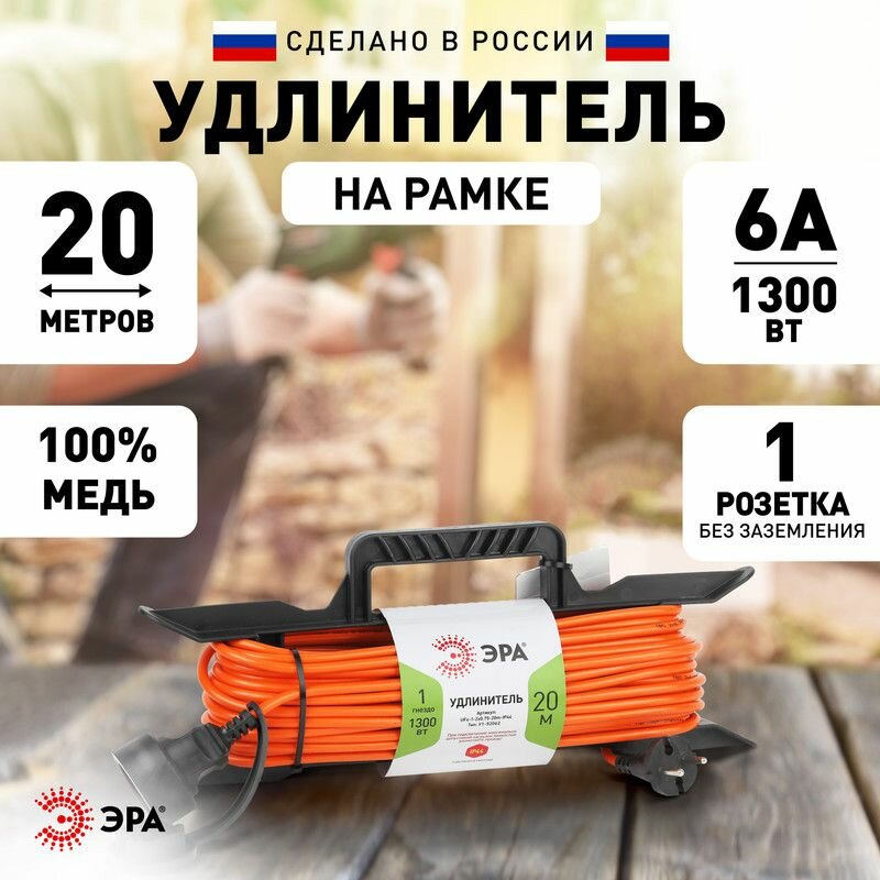 Удлинитель силовой UFx-1-2x0.75-20m-IP44 на рамке б/з 1гнездо 20м ПВС 2х0.75 Эра, ЭРА Б0046821 (1 шт.)