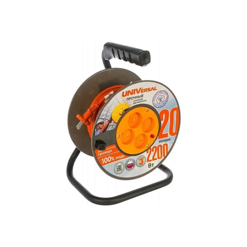 Удлинитель на катушке Universal 4х20м без заземл. 10А IP20 ВЕМ-250 термо ПВС 2х1, 9632896