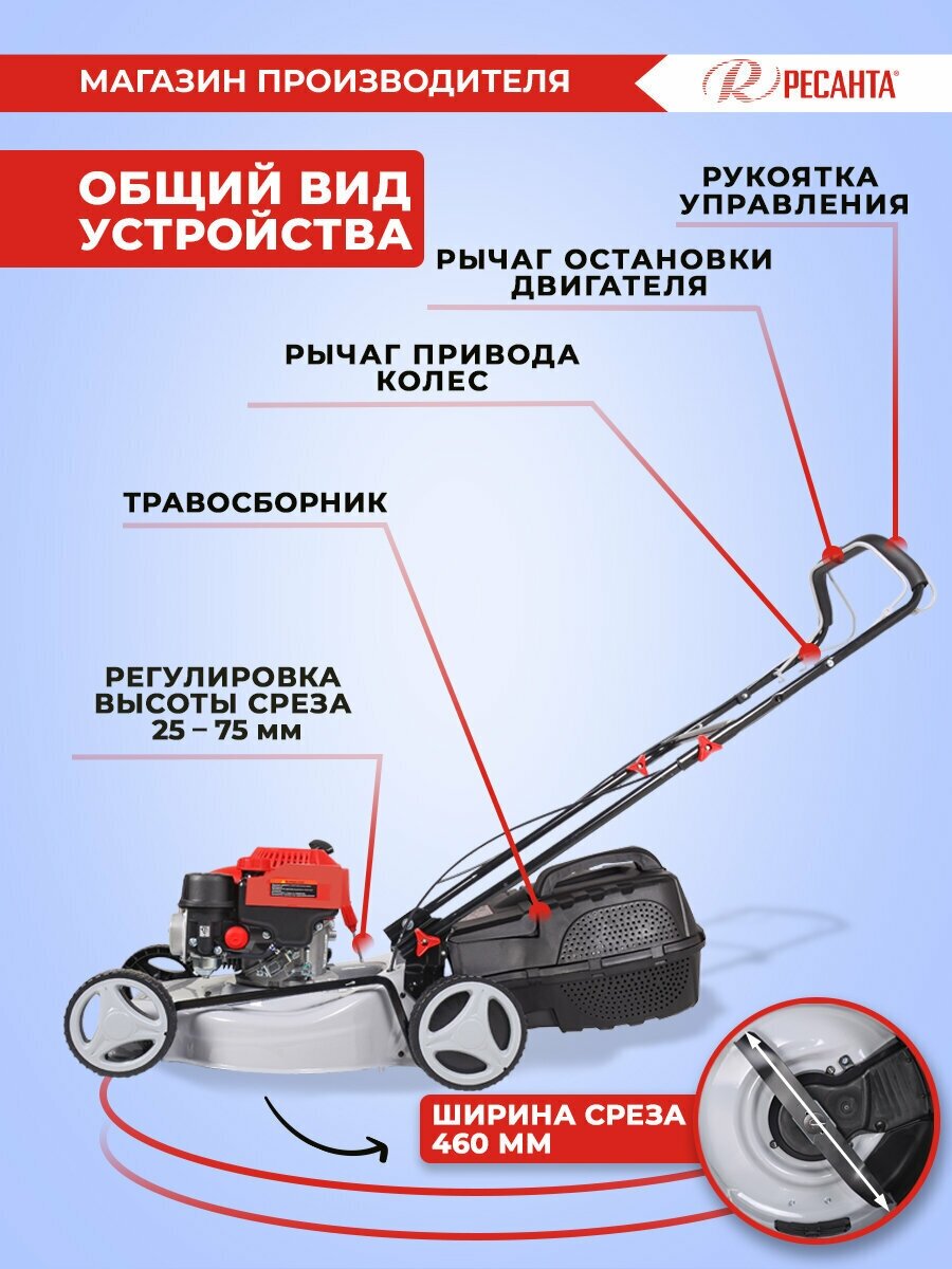 Бензиновая газонокосилка РЕСАНТА КР-5.0 БП, 5 л.с., 46 см