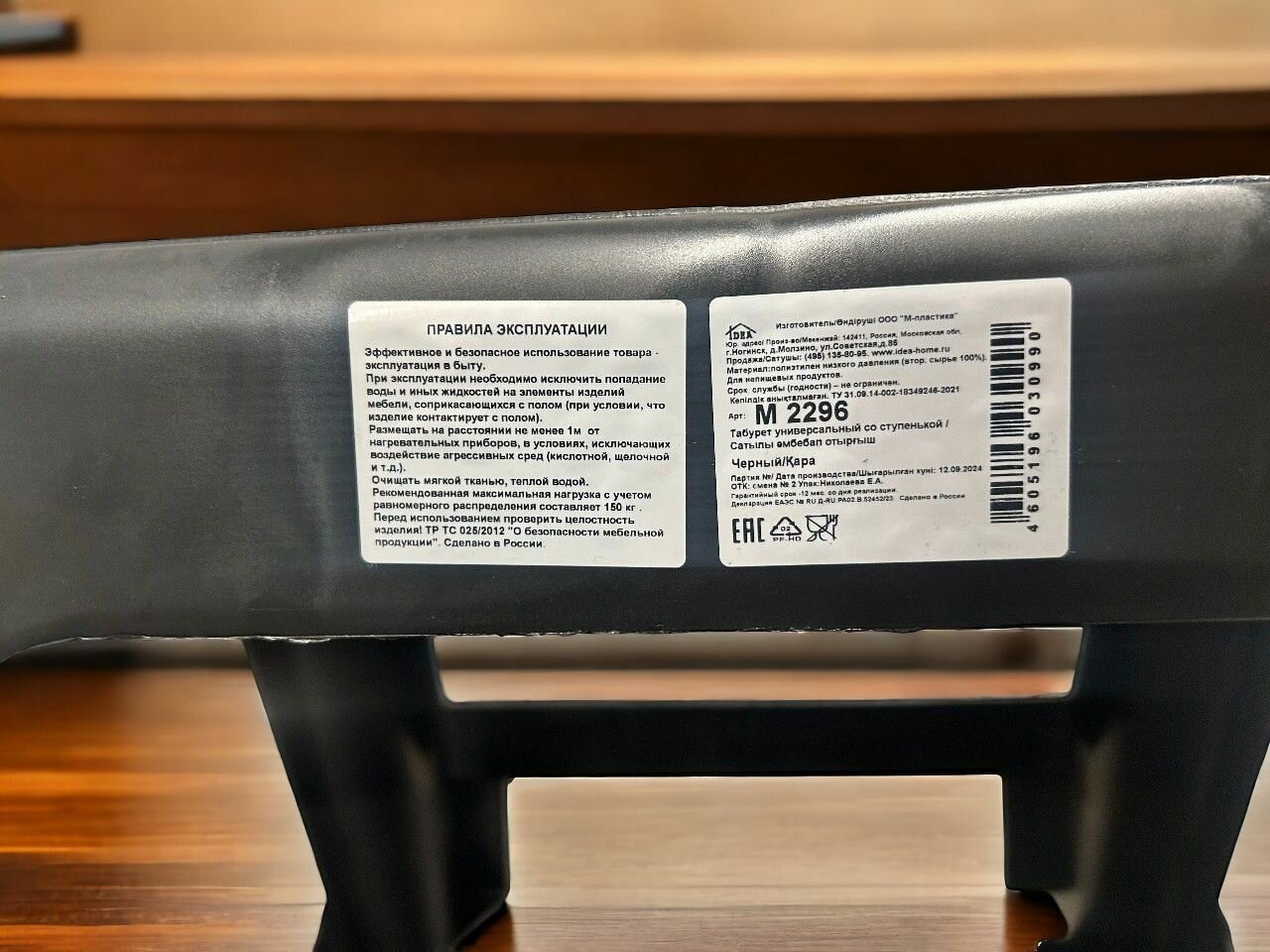 Стремянка-табурет Idea 2 ступени, стационарная, пластиковая, нагрузка 120 кг, вес 2,4 кг, черная, , М 2296 интересное: