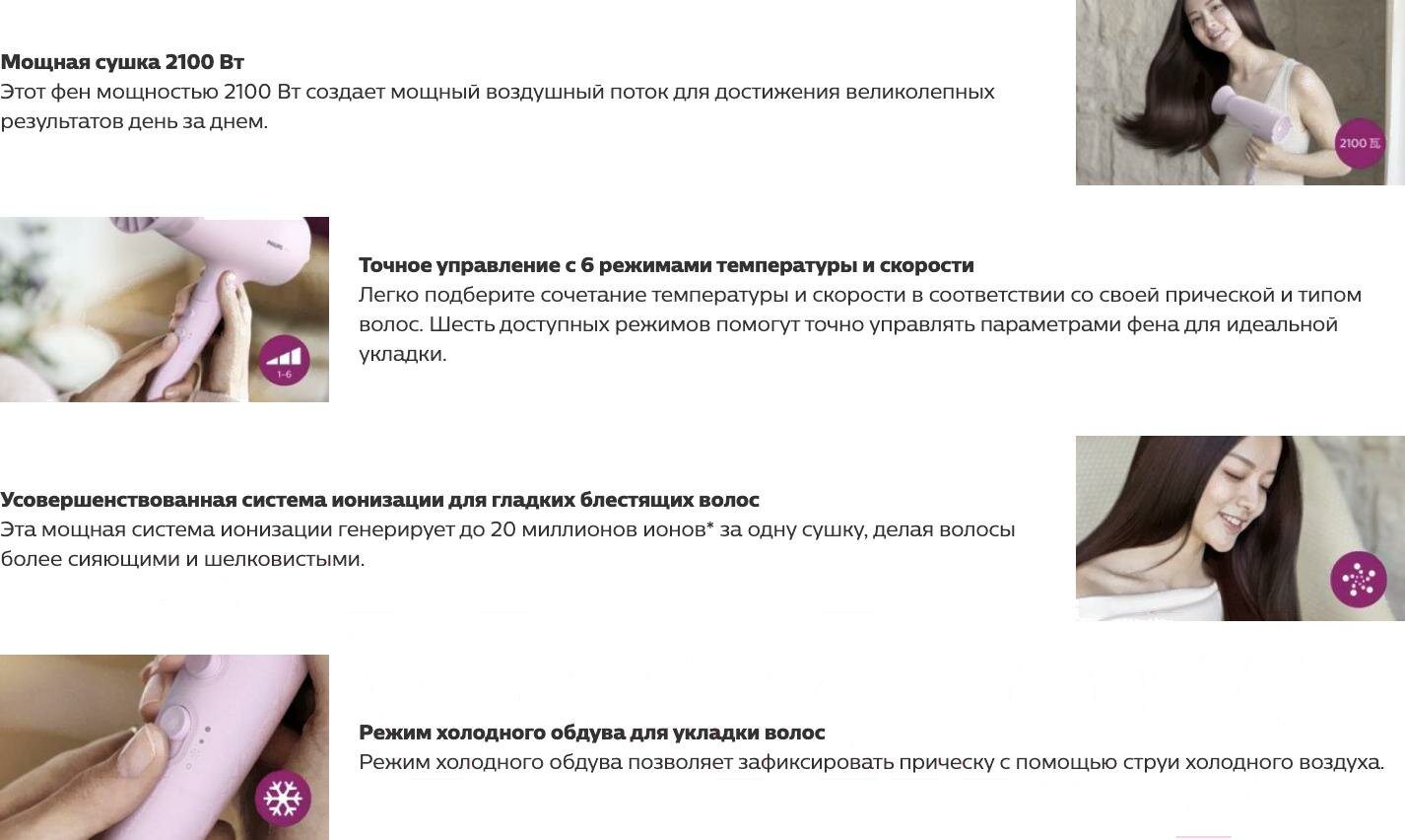 | Плюсы: | Фен не пересушивает волосы