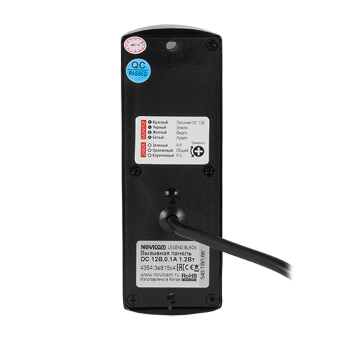 Вызывная панель Novicam LEGEND BLACK. Камера 700ТВЛ с ИК-подсветкой, угол обзора 95°. Видеовыход CVBS PAL.