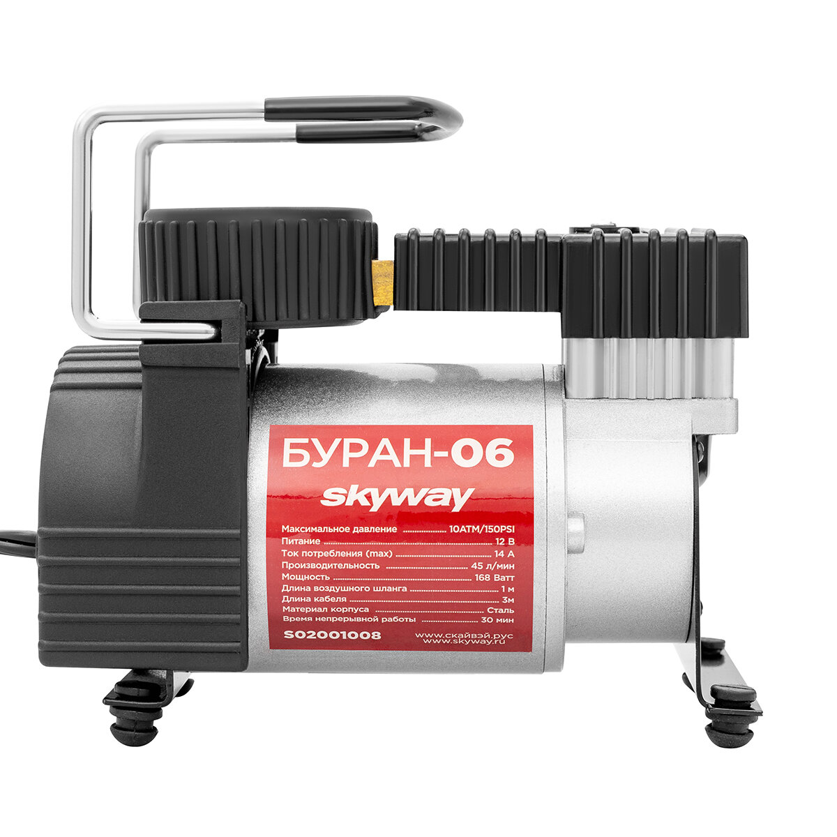 Компрессор автомобильный 45 л/мин,10 атм "SKYWAY" БУРАН-06 в прикуриватель Skyway S02001008
