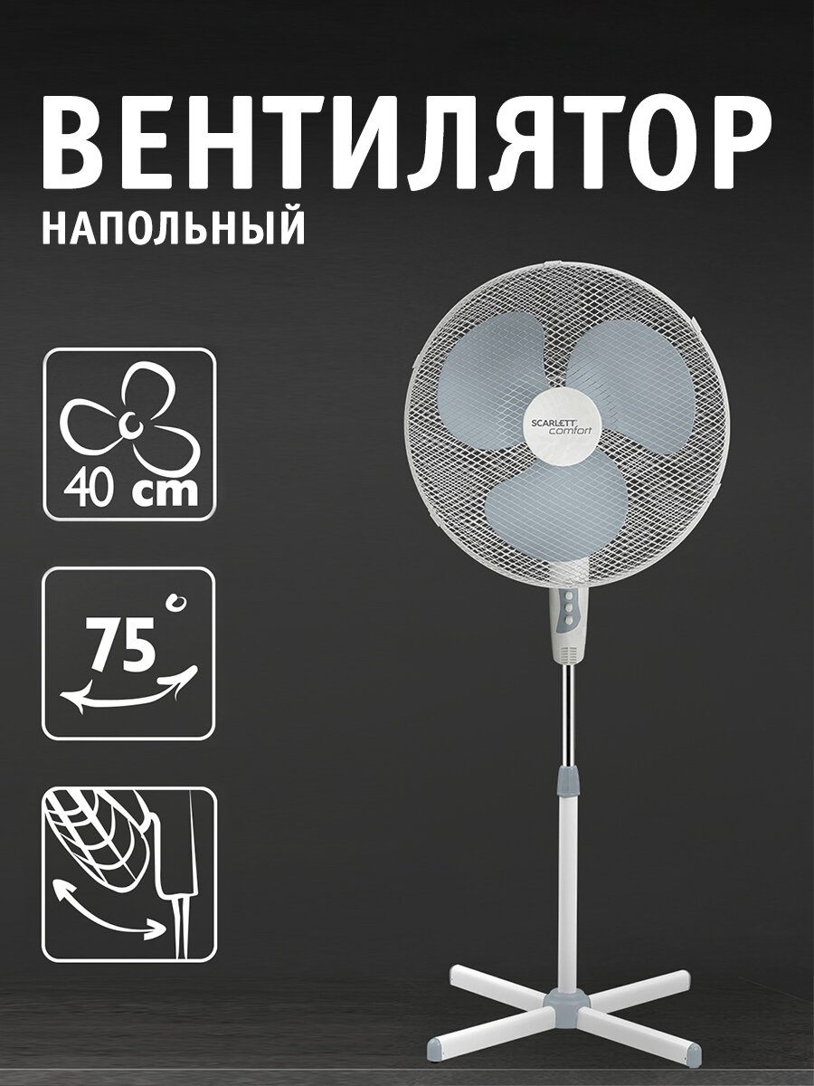 Вентилятор напольный SCARLETT SC-SF111B27, 40см , белый/серый