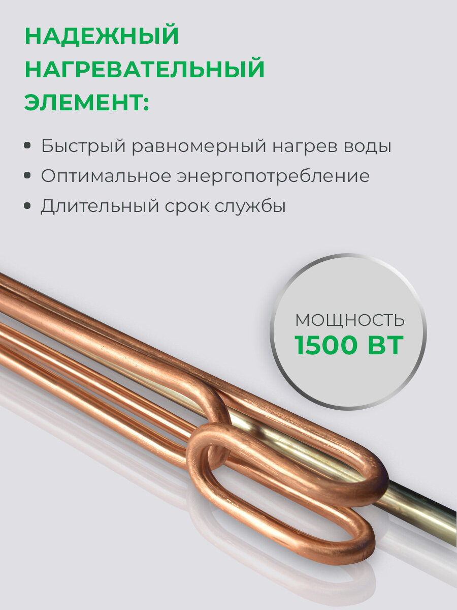 | Плюсы: | за полчаса нагревает, верхняя подводка воды |