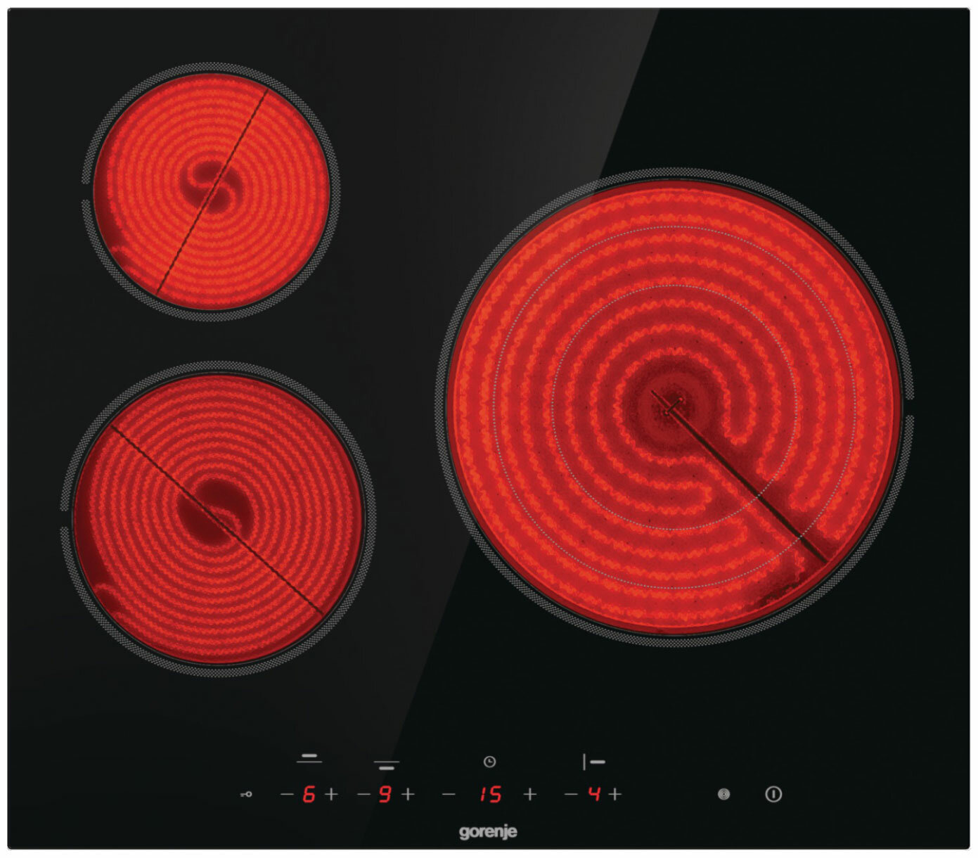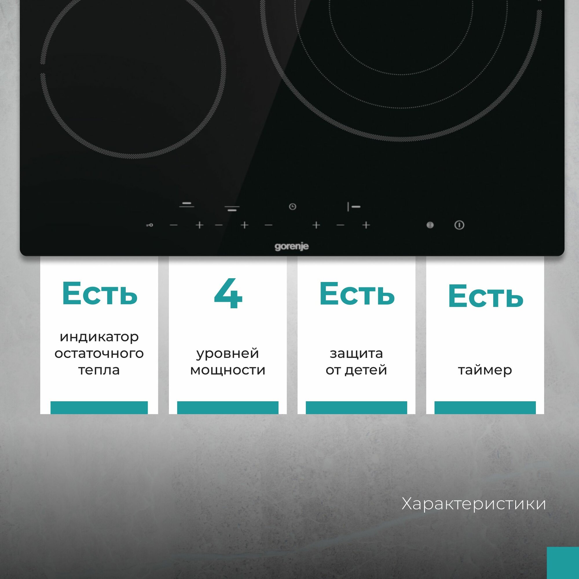 Поверхность стеклокерамическая GORENJE ECT63ASC черная (3-конф)