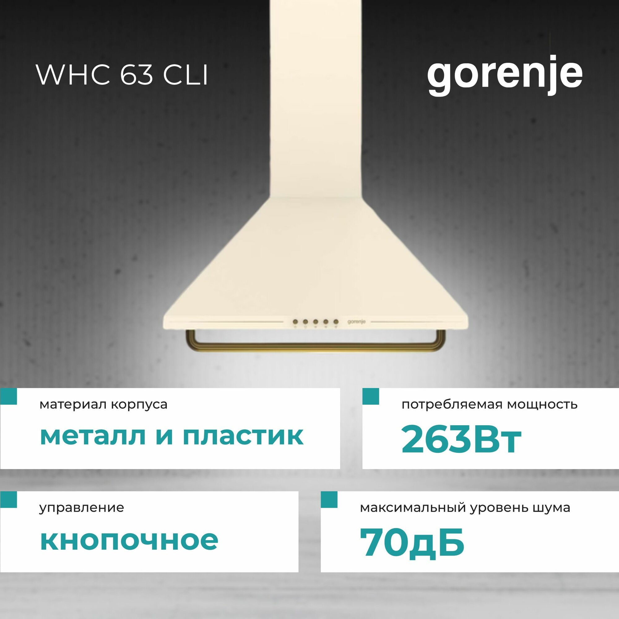 Купольная вытяжка Gorenje WHC 63 CLI, цвет корпуса слоновая кость, цвет окантовки/панели бежевый