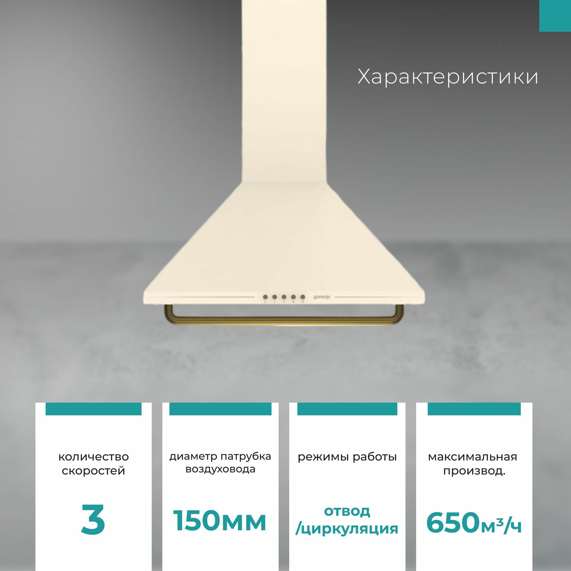 Вытяжка каминная Gorenje Classico WHC63CLI бежевый управление: кнопочное (1 мотор)