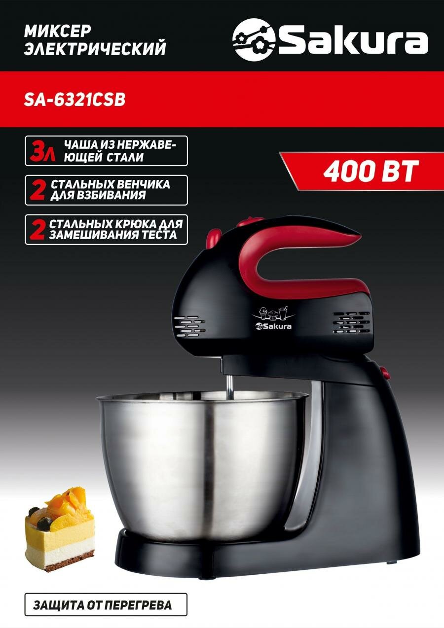 миксер SAKURA SA-6321CSB 400Вт 3,0л с чашей