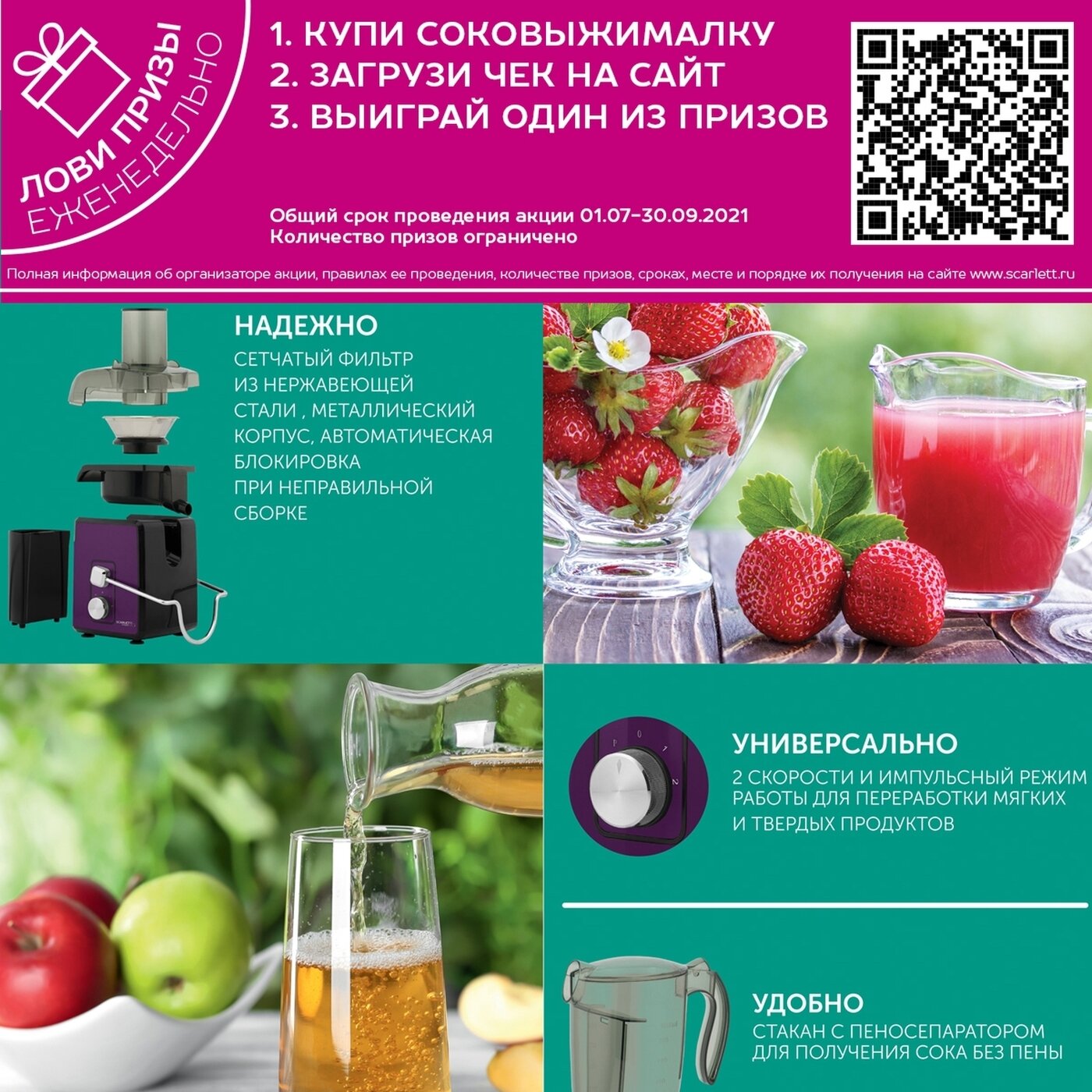 Купить Соковыжималка центробежная Scarlett SC-JE50S47 фиолетовый JE50S47 .