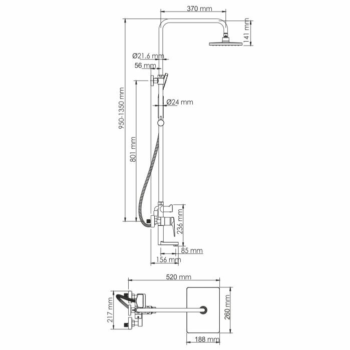 Душевая стойка Wasserkraft A18401 9062902 со смесителем