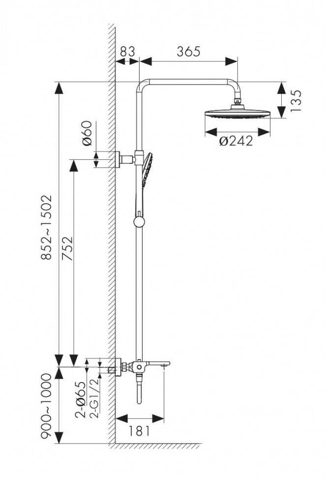 | Ширина верхнего душа | 190 мм |