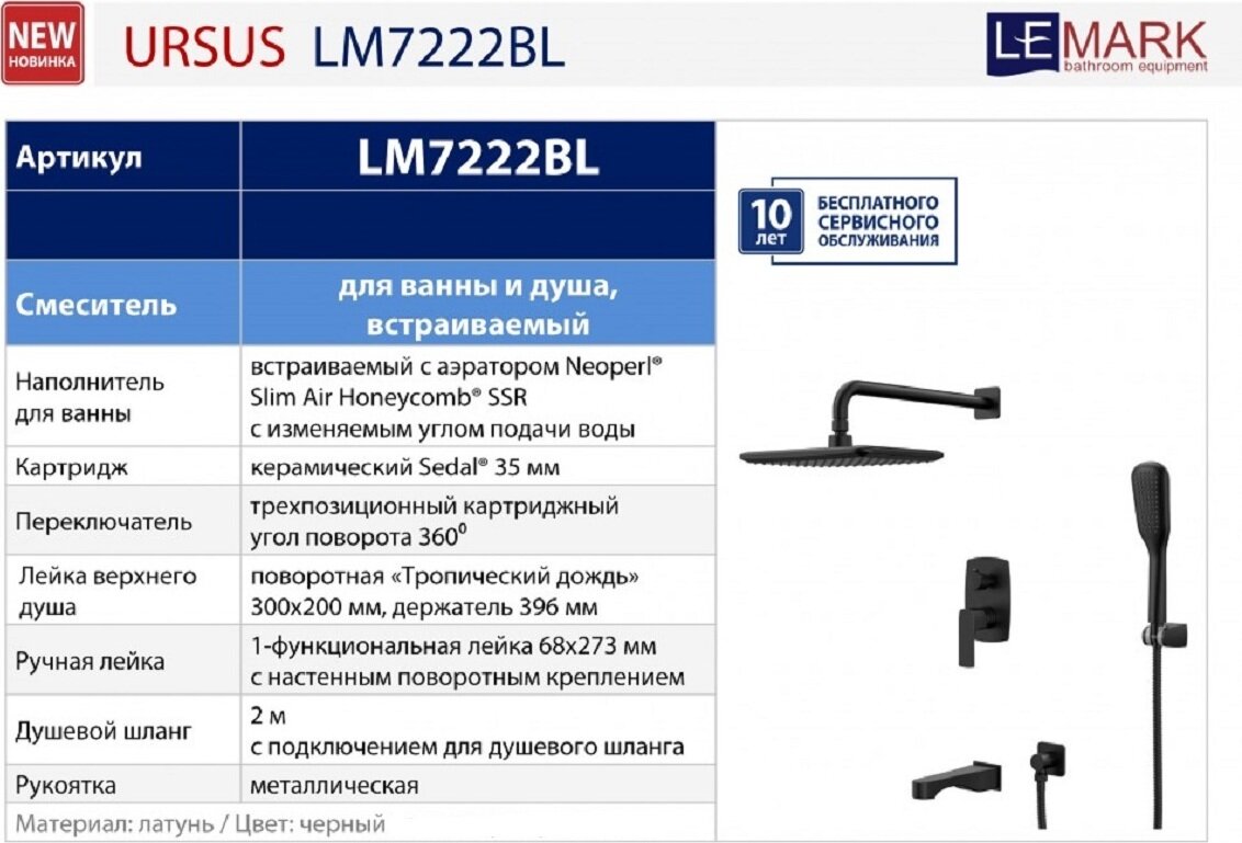 Душевая сиситема Lemark Ursus (LM7222BL)