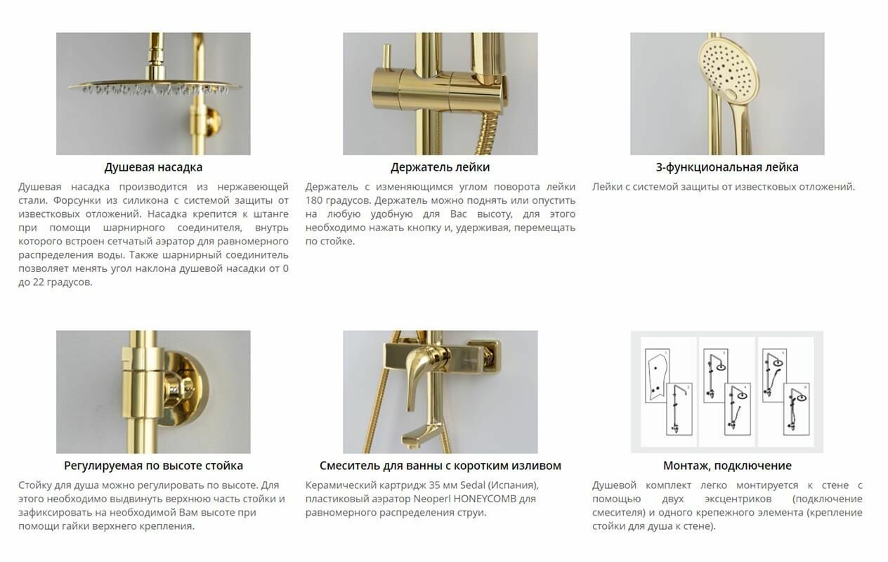 СохранитьДушевая система WasserKRAFT Sauer A17101 золото интересное:
