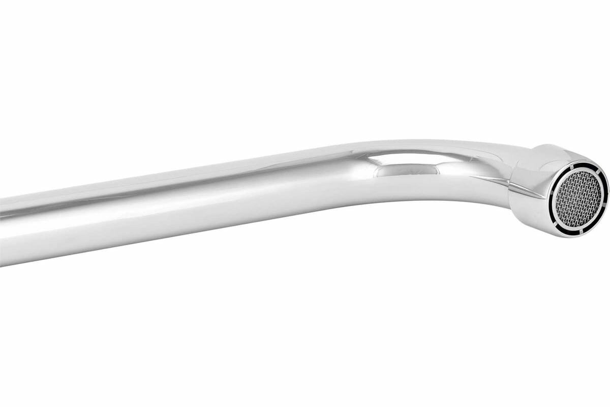 Плавный и длинный изгиб крана, благодаря которому при высоком давлении воды, кран не подпрыгивает |