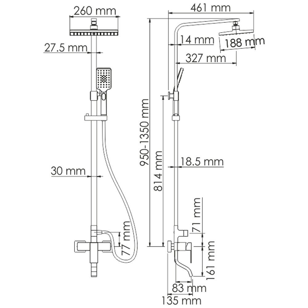 | Высота стойки для душа | 1350 мм |