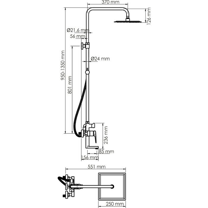 Душевая стойка Wasserkraft A16701 9062903 со смесителем