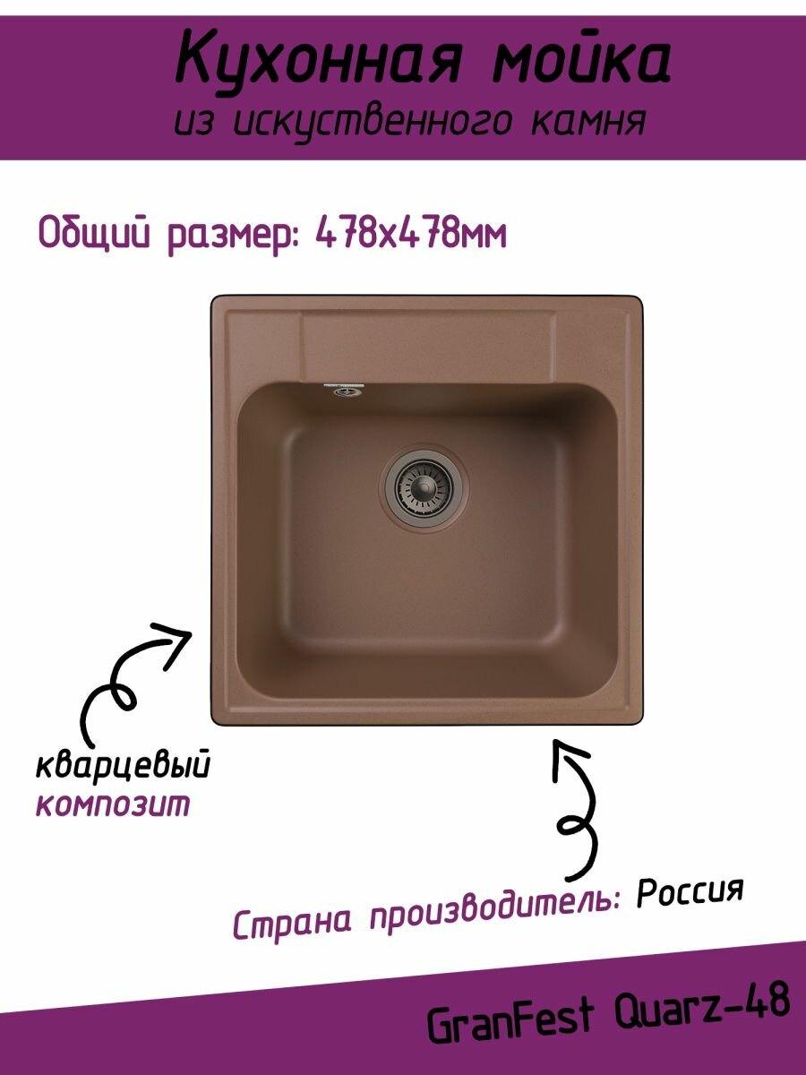 Кухонная мойка GRANFEST Quarz GF-Z48, кварц, 47.8см х 47.8см