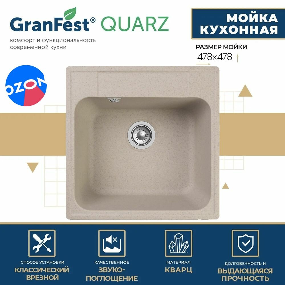 GRANFEST Мойка QUARZ 48 1-чаша 480*480мм бежевый арт.GF-Z-