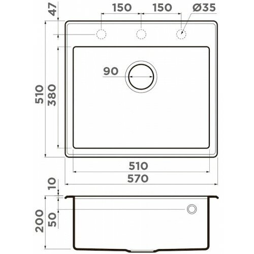 Мойка гранитная для кухни Omoikiri Tedori 57-BL 570х510 мм 4993980 черный