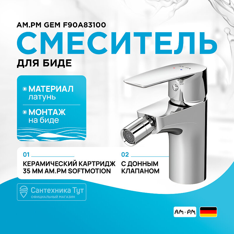 Смеситель AM.PM Gem F90A83100 для биде интересное: