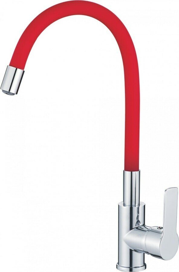 Haiba Смеситель для кухни (Lt) трубчатый гибкий силиконовый излив,карт.35мм,гайка,красн/хр,HB70112-6