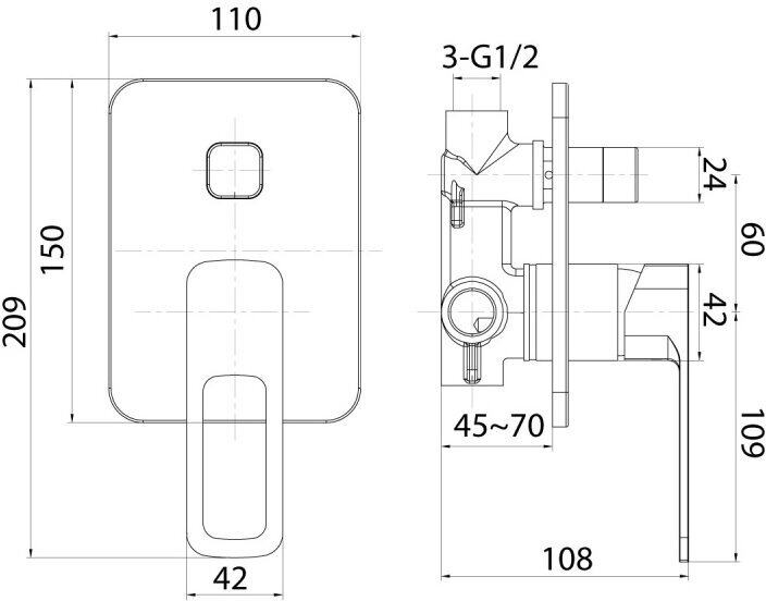 Встраиваемый смеситель с двумя выходами IDDIS Slide SLISB00i67 хром
