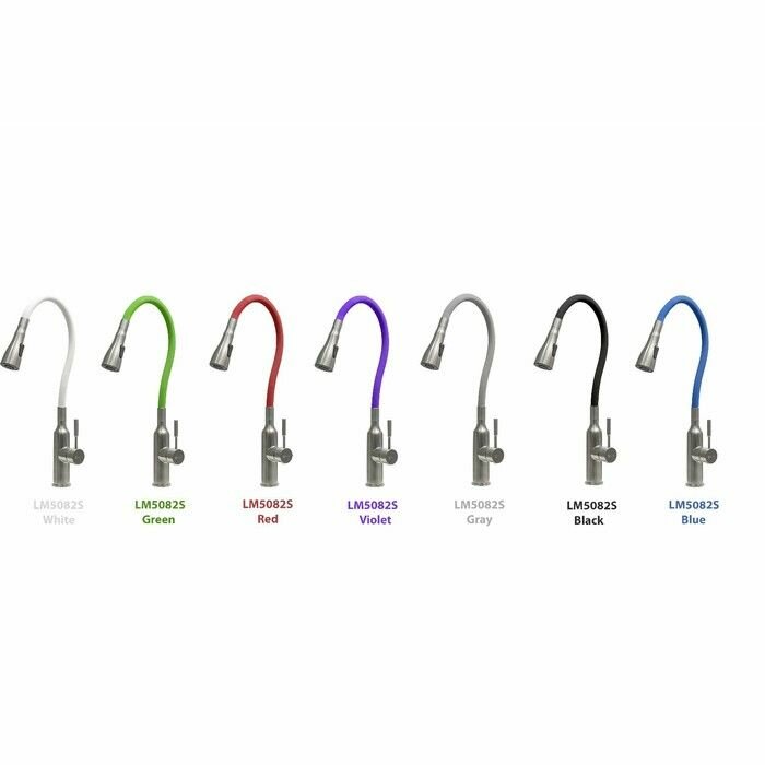 Смеситель для кухни с красным гибким изливом, нержавеющая сталь, режим душ, гибкая подводка 60см (LM5082S-Red)