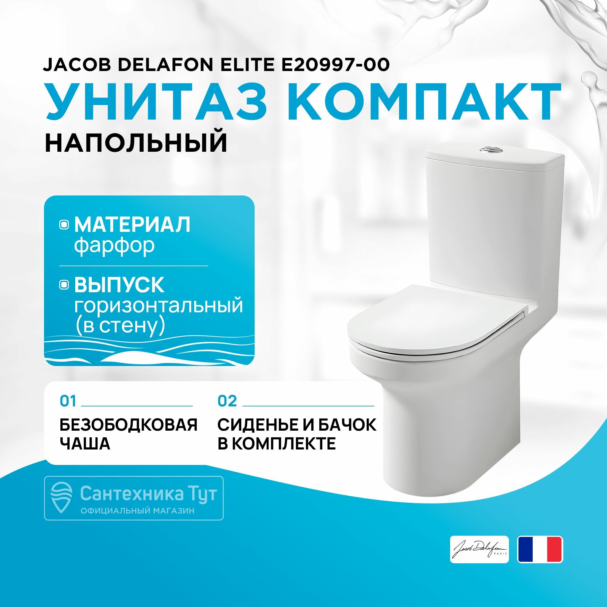 Купить Унитаз-компакт безободковый с сиденьем микролифт Jacob Delafon Elite E20997-00