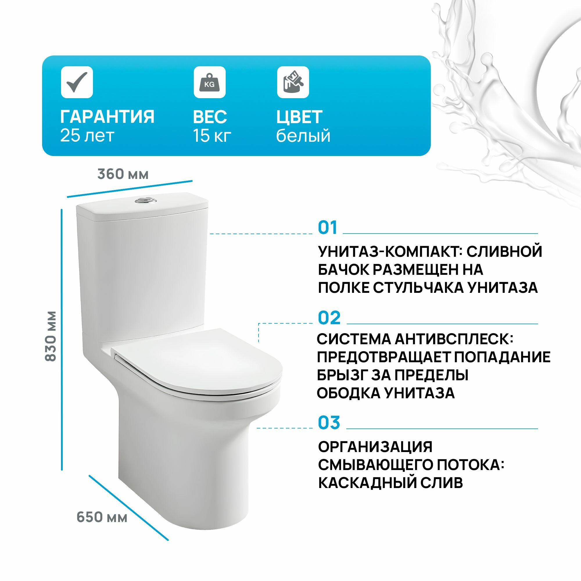 Унитаз компакт Vincea Evo VT2B-34 без бачка с сиденьем Микролифт