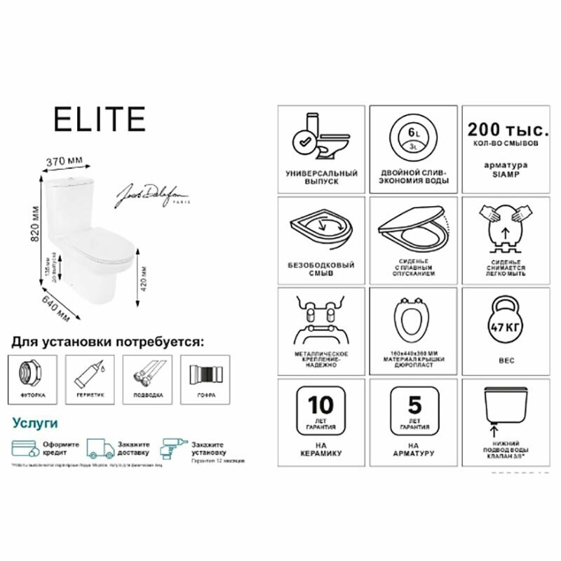 Унитаз Jacob Delafon Elite Горизонтальный Выпуск Безободковый сиденье: Дюропласт микролифт