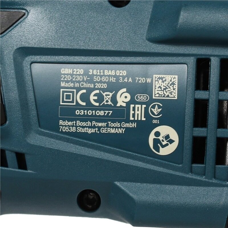 | Комплектация | перфоратор GBH 220, дополнительная рукоятка, ограничитель глубины, кейс |