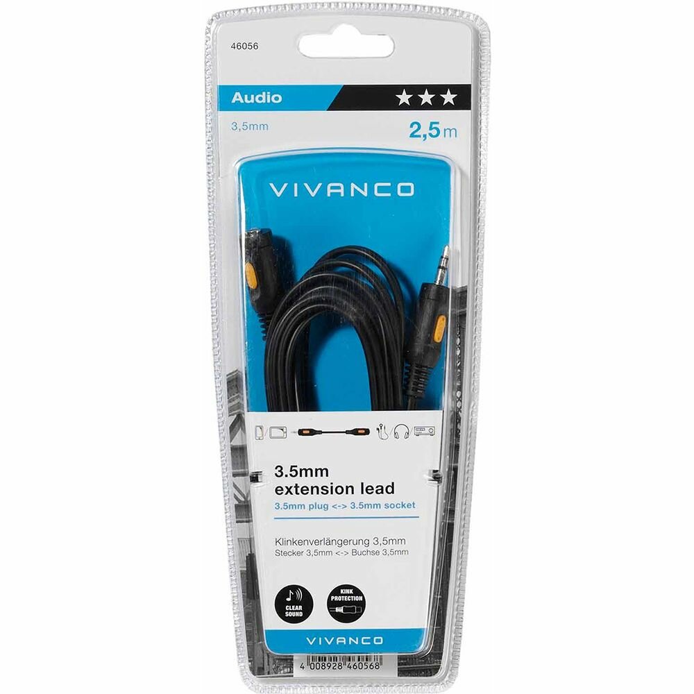 Купить Кабель аналоговый аудио Vivanco Jack3.5 папа/мама 2,5м (46056)