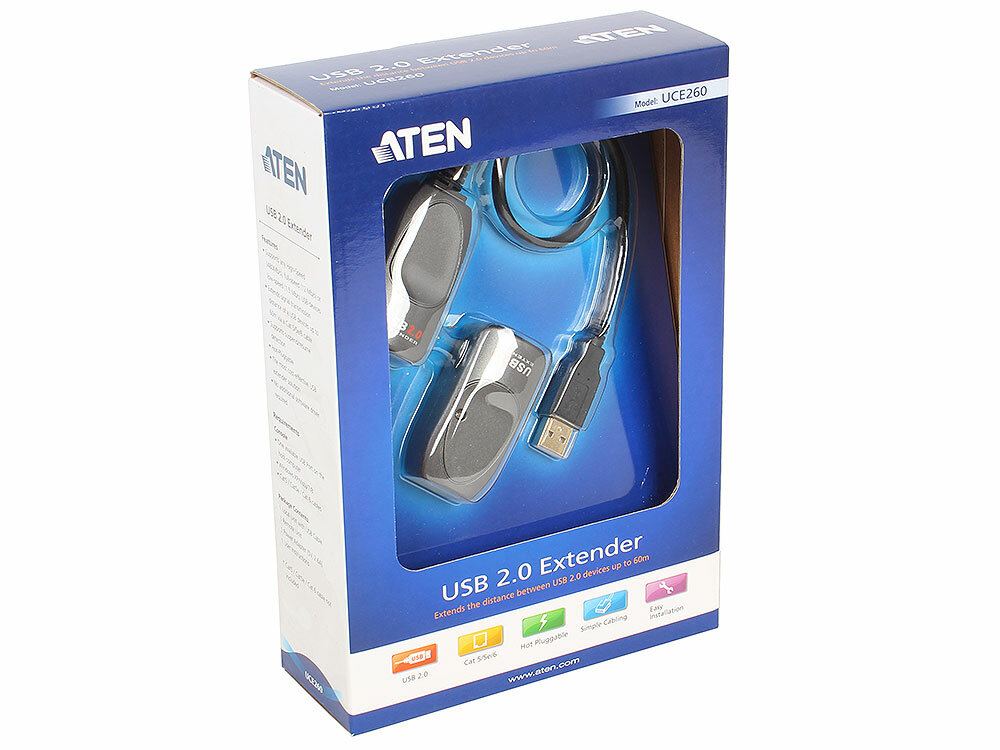 Aten UCE260 Удлинитель, USB 2.0, 60 метр., со скоростями передачи данных, соответствующим High Speed 480 Мбит с , Full Speed 12 Мбит с и Low Speed 1.5 Мбит с USB A-тип, Male Female без шнуров