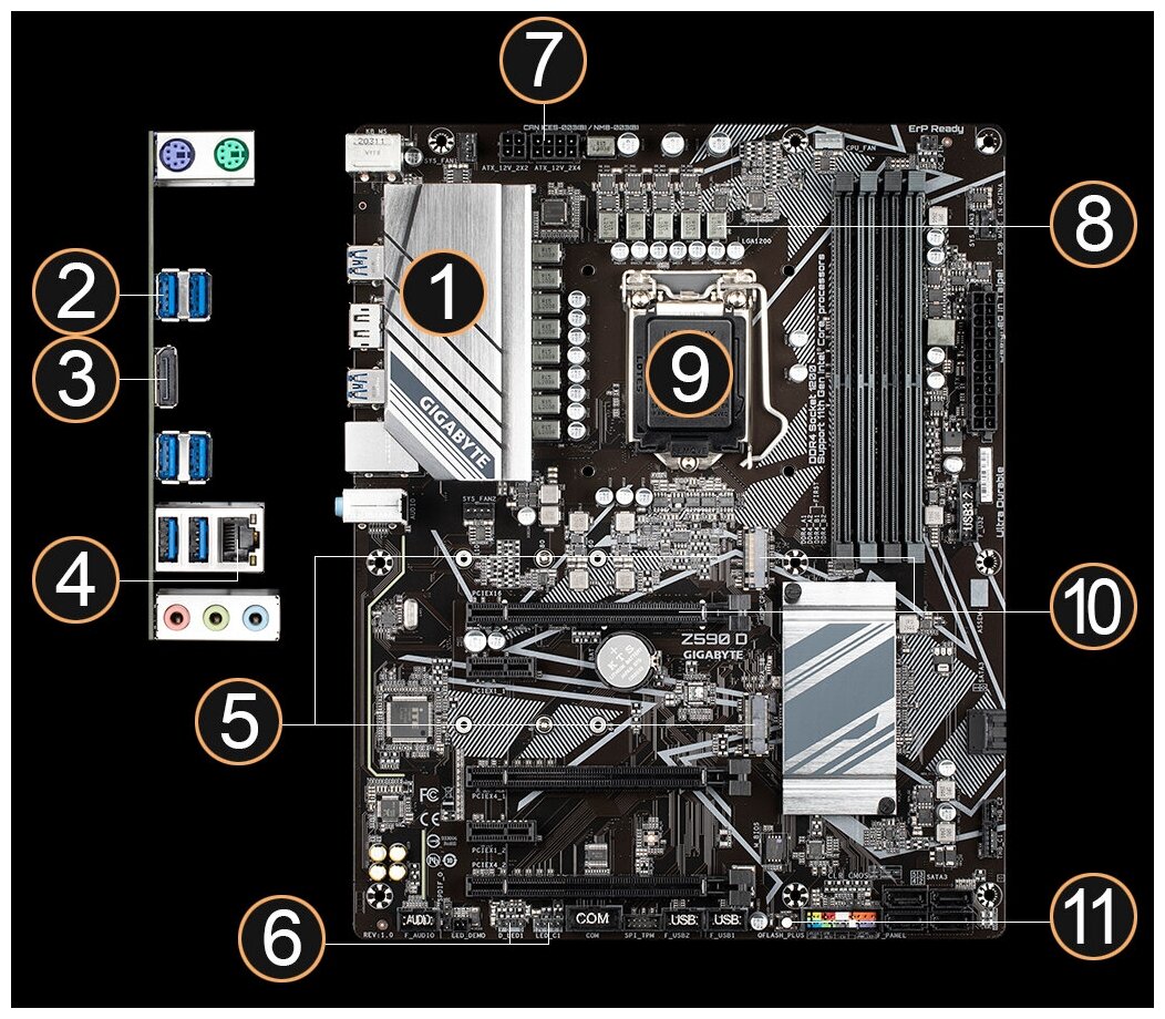 Материнская плата GIGABYTE Z590 D (LGA1200, ATX) интересное:
