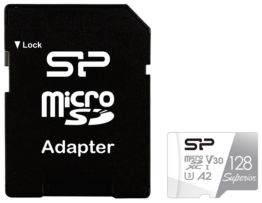 Карта памяти Silicon Power micro SDXC 128Gb Superior UHS-I U3 V30 A2 + ADP (100/80 Mb/s)
