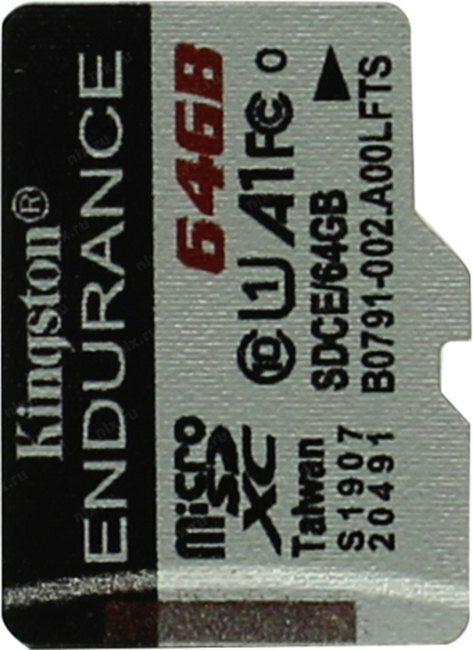 Kingston High Endurance microSDXC 64 ГБ SDCE/64GB Class 10, A1, UHS Class 1, запись - 30 Мбайт/сек, чтение - 95 Мбайт/сек (290226)