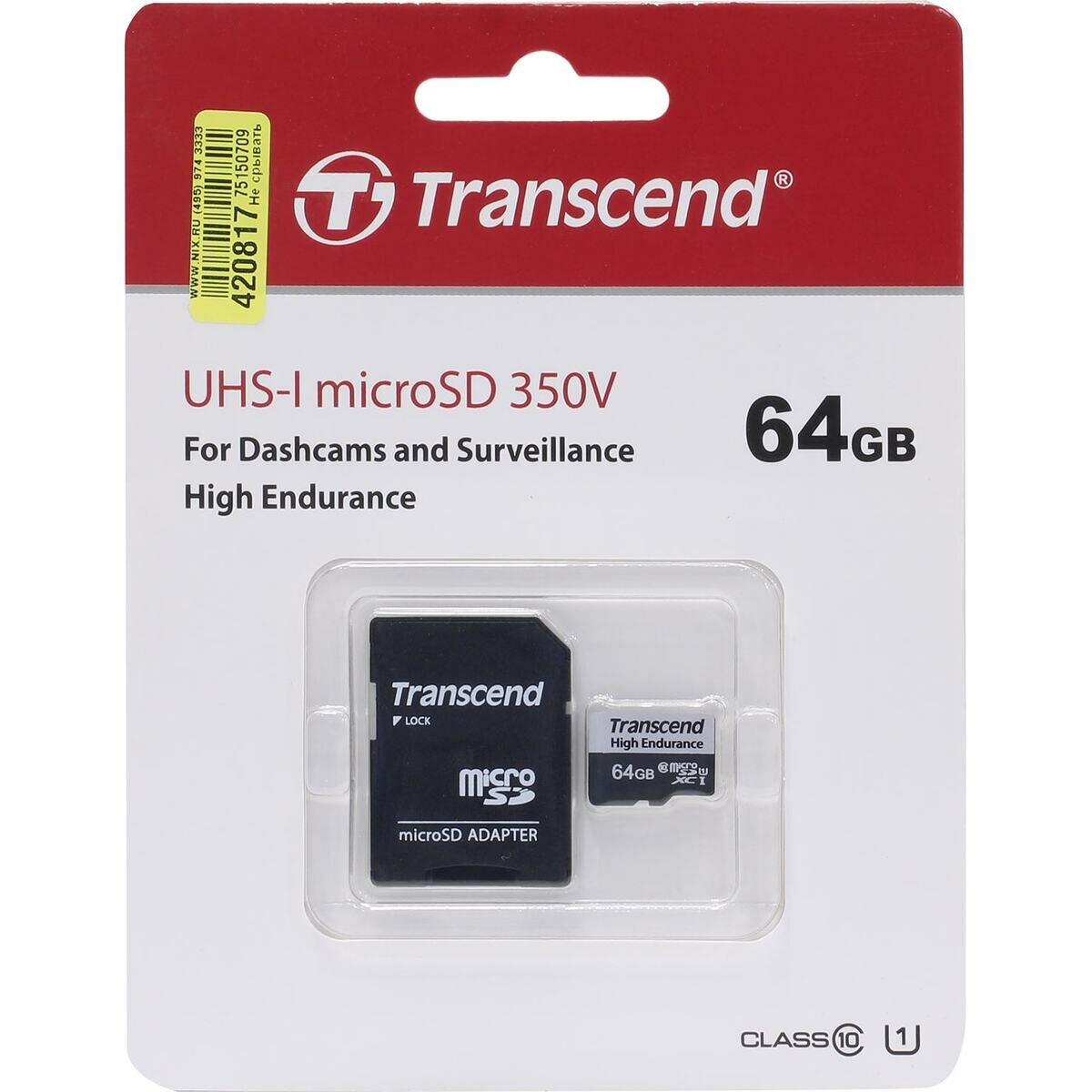 Карта памяти Transcend MicroSDXC High Endurance 350V 64 Гб UHS-I Class 1 (U1), Class 10 TS64GUSD350V