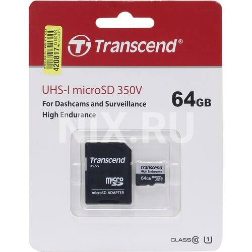 Карта памяти Transcend MicroSDXC High Endurance 350V 64 Гб UHS-I Class 1 (U1), Class 10 TS64GUSD350V