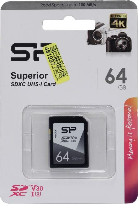 Карта памяти Silicon Power Superior SDXC 64 ГБ [SP064GBSDXCV3V10]