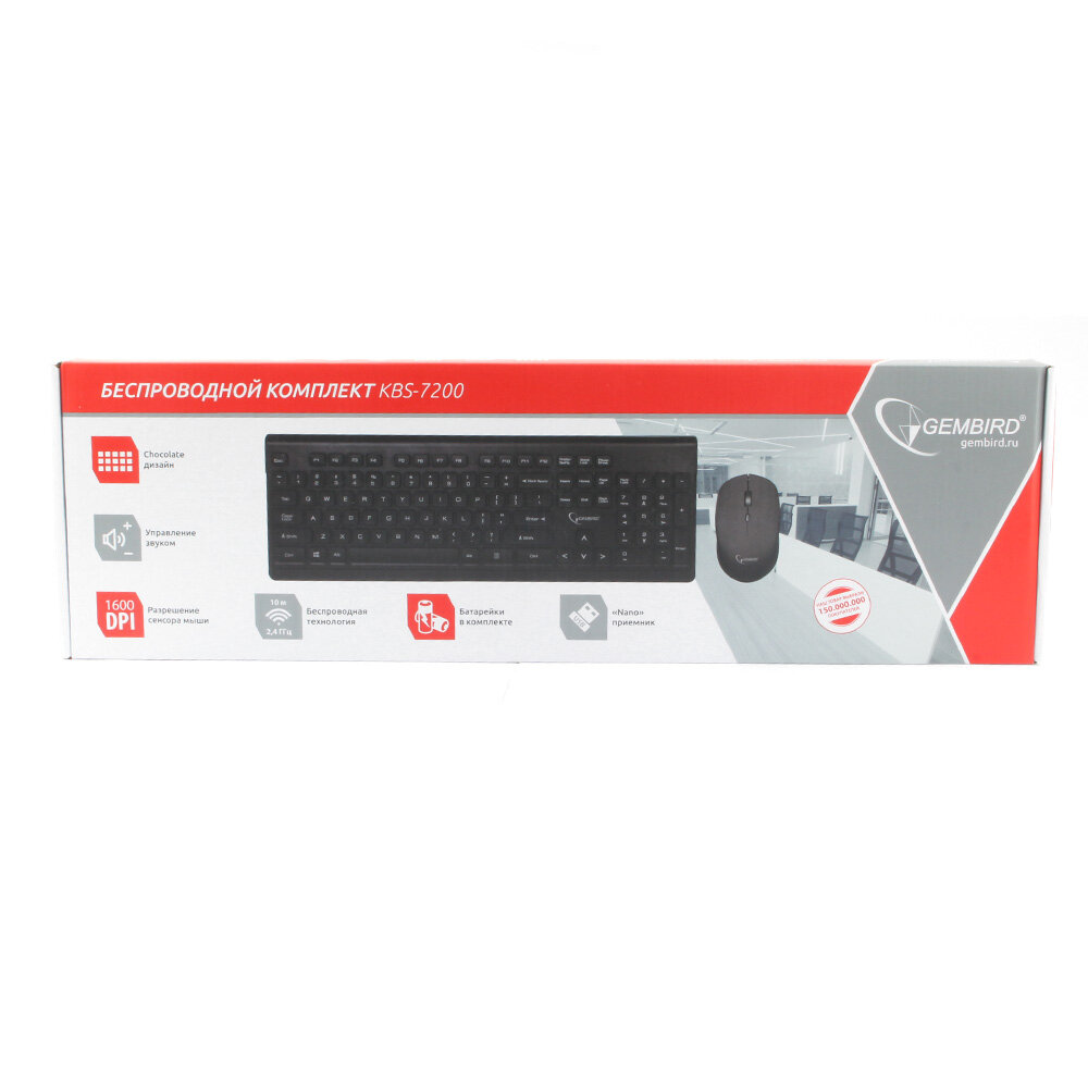 Клавиатура + мышь Gembird KBS-7200 Беспроводной комплект, черный, 2.4ГГц/10м, 1600 DPI, мини-прием