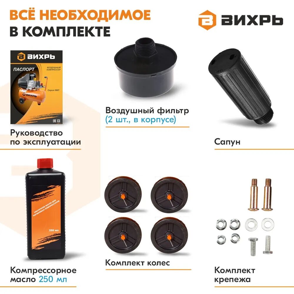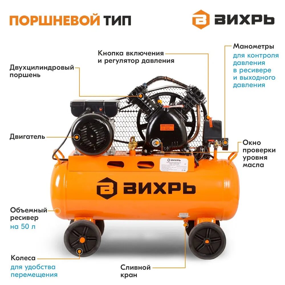 Компрессор Вихрь Кмп-400/50р черно-оранжевый .