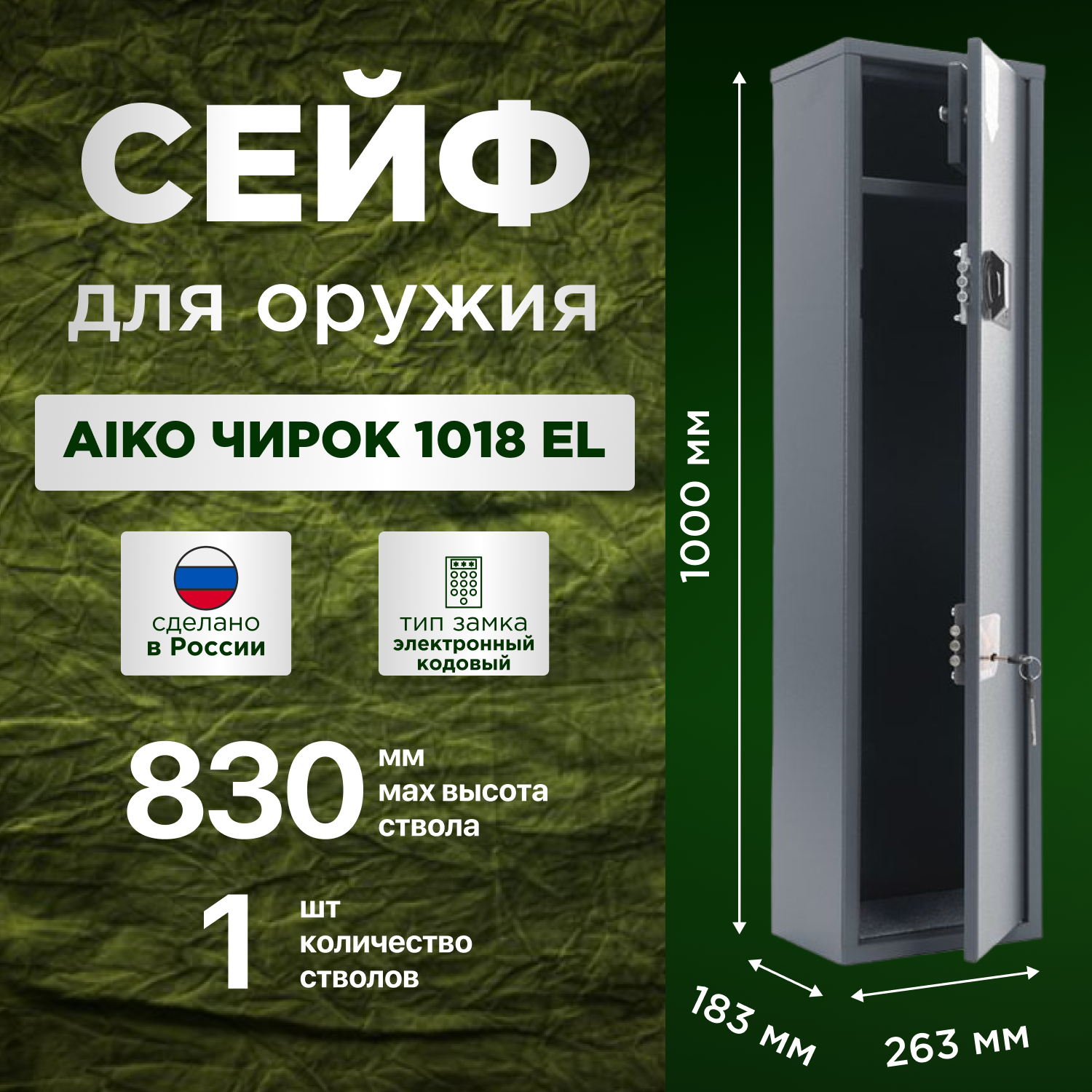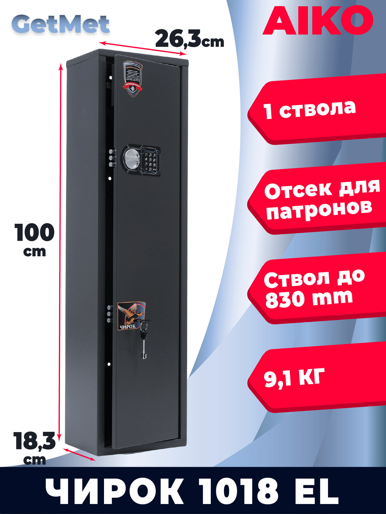 Сейф оружейный металлический AIKO Чирок 1018EL c электронным замком, 100х26х18см, для 1 ствола, с трейзером