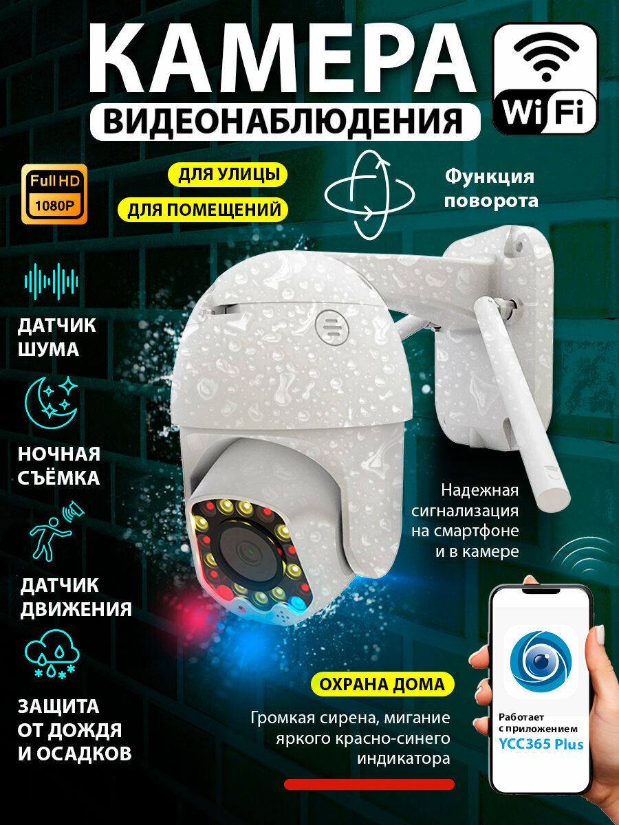 Камера Wi-Fi RITMIX IPC-277S, full HD 1080p, уличная, поворотная, с сиреной, цветная ночная съёмка (1/10)