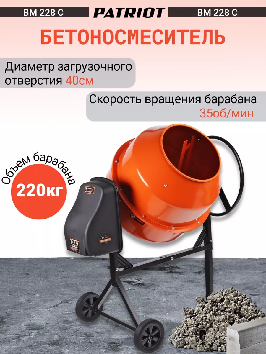 Бетономешалка Patriot BM 228C, 220 кг, 800 Вт