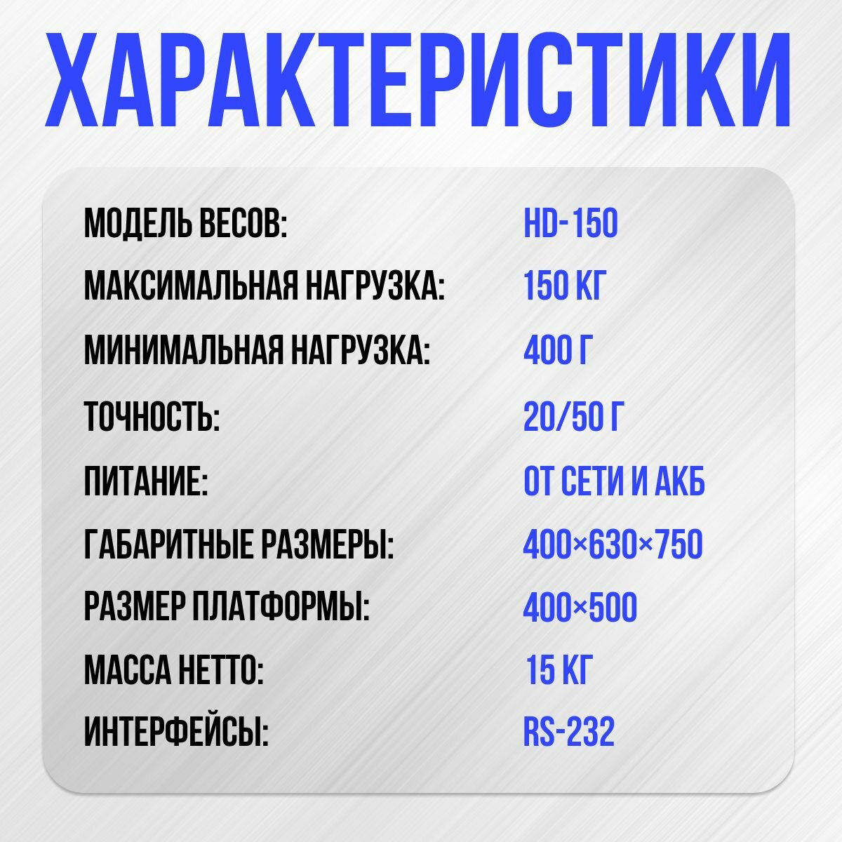 | Наибольший предел взвешивания | 150 кг |