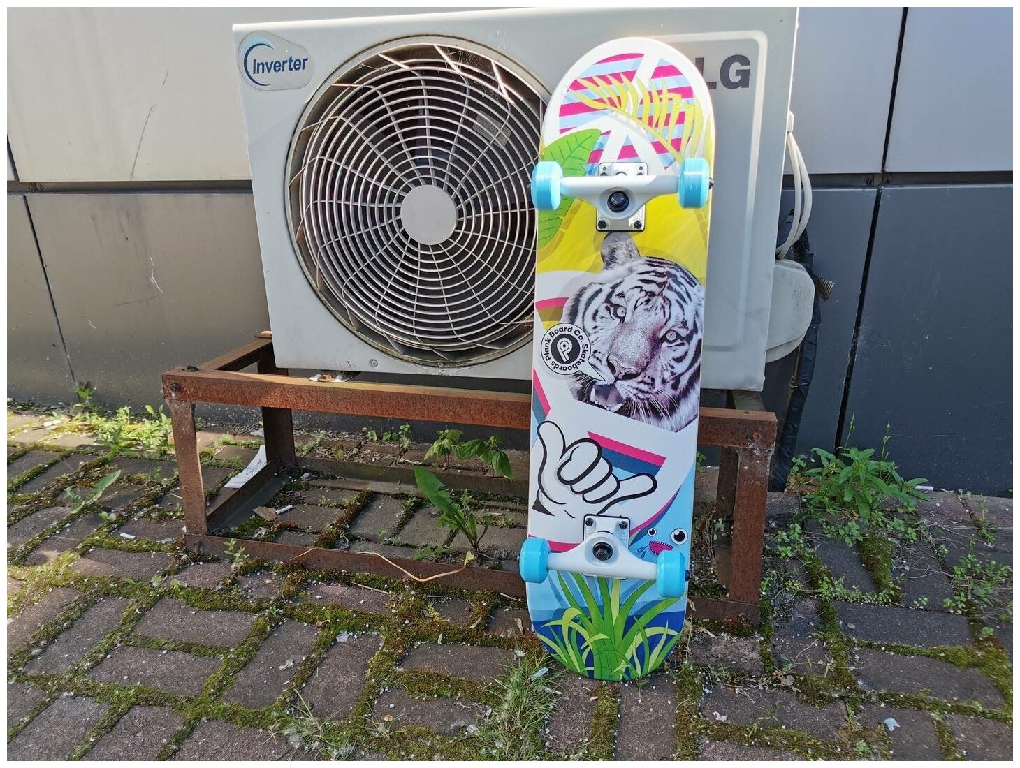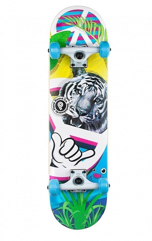Скейтборд PLANK PTIGY (размер 31*8 дюймов, цвет белый/зеленый/голубой)