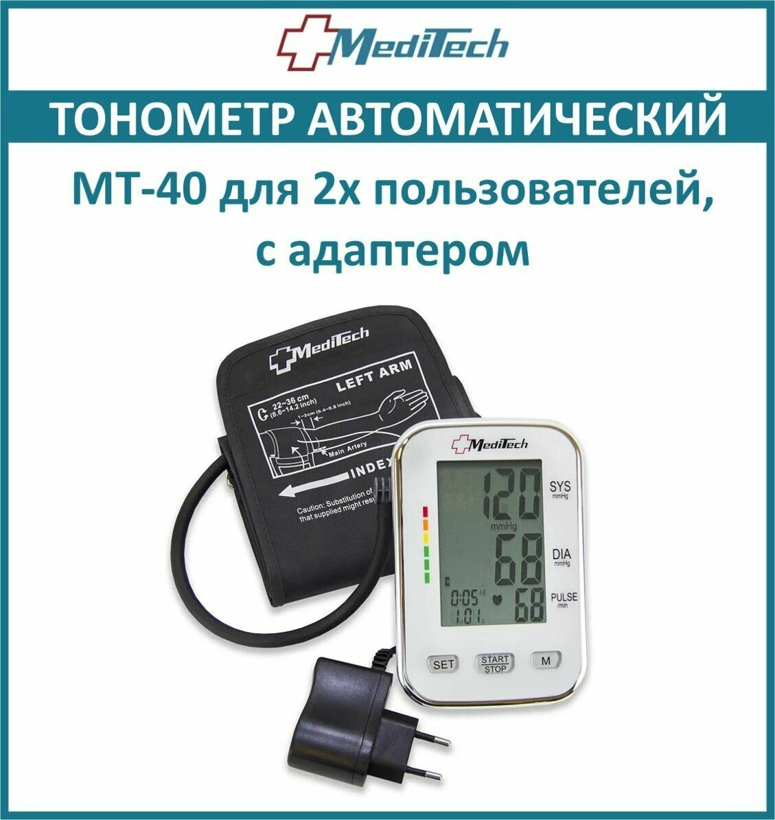 Тонометр автоматический MediTech МТ-40 манжета 22-36 см, для 2х пользователей, с адаптером