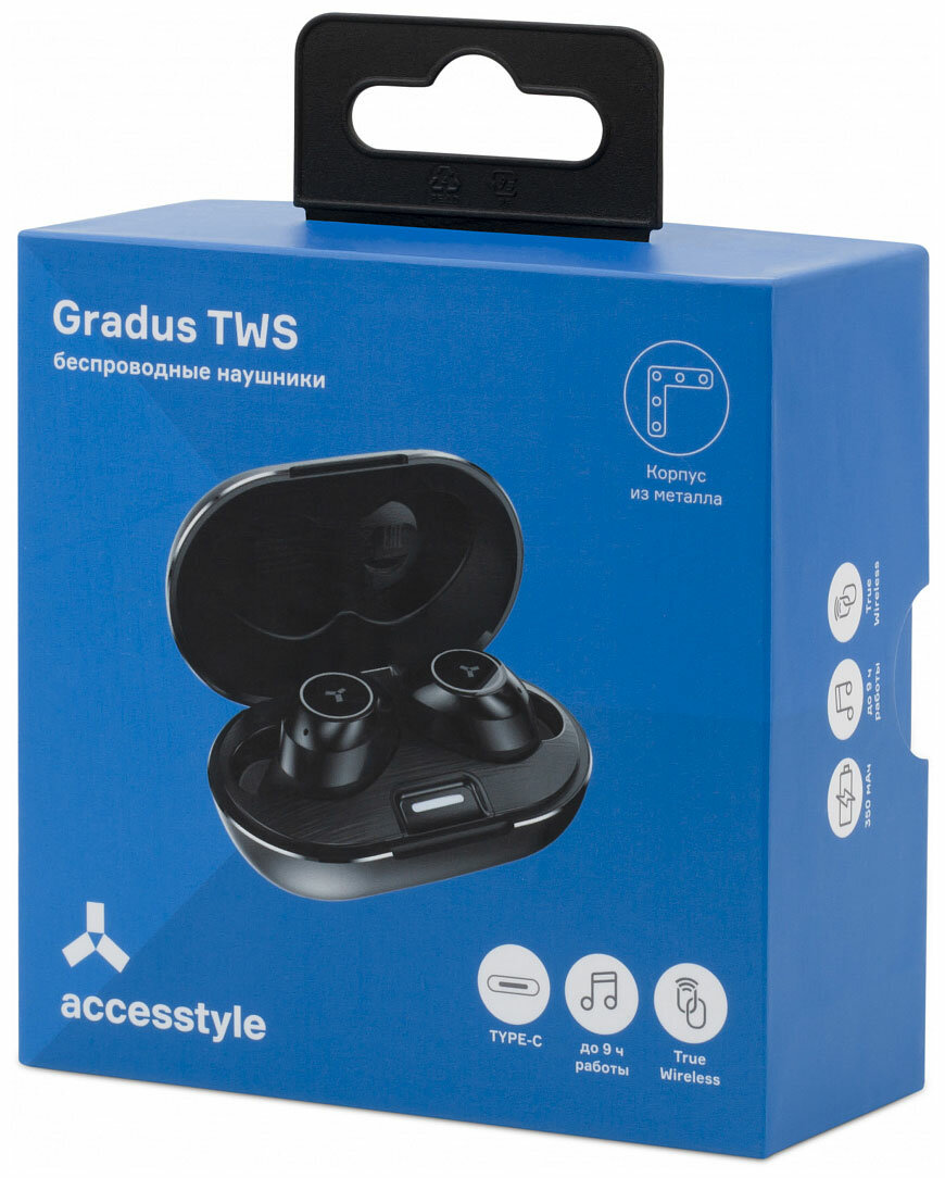Гарнитура ACCESSTYLE Gradus TWS, Bluetooth, вкладыши, черный [gradus tws black]