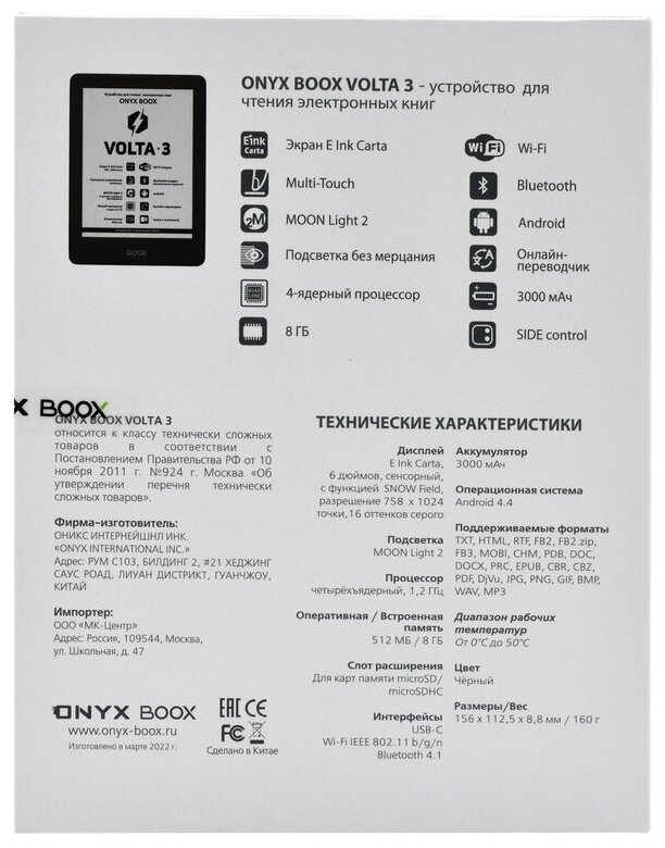 Ниже Вы можете прочитать отзывы на Электронная книга ONYX BOOX Volta 3 (Черная), ознакомится с подробными характеристиками, посмотреть интересные обзоры и фотографии на Электронная книга ONYX BOOX Volta 3 (Черная).